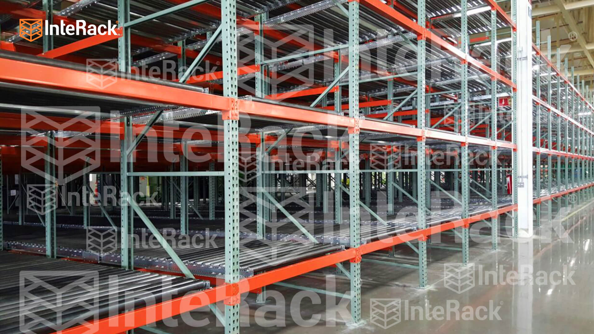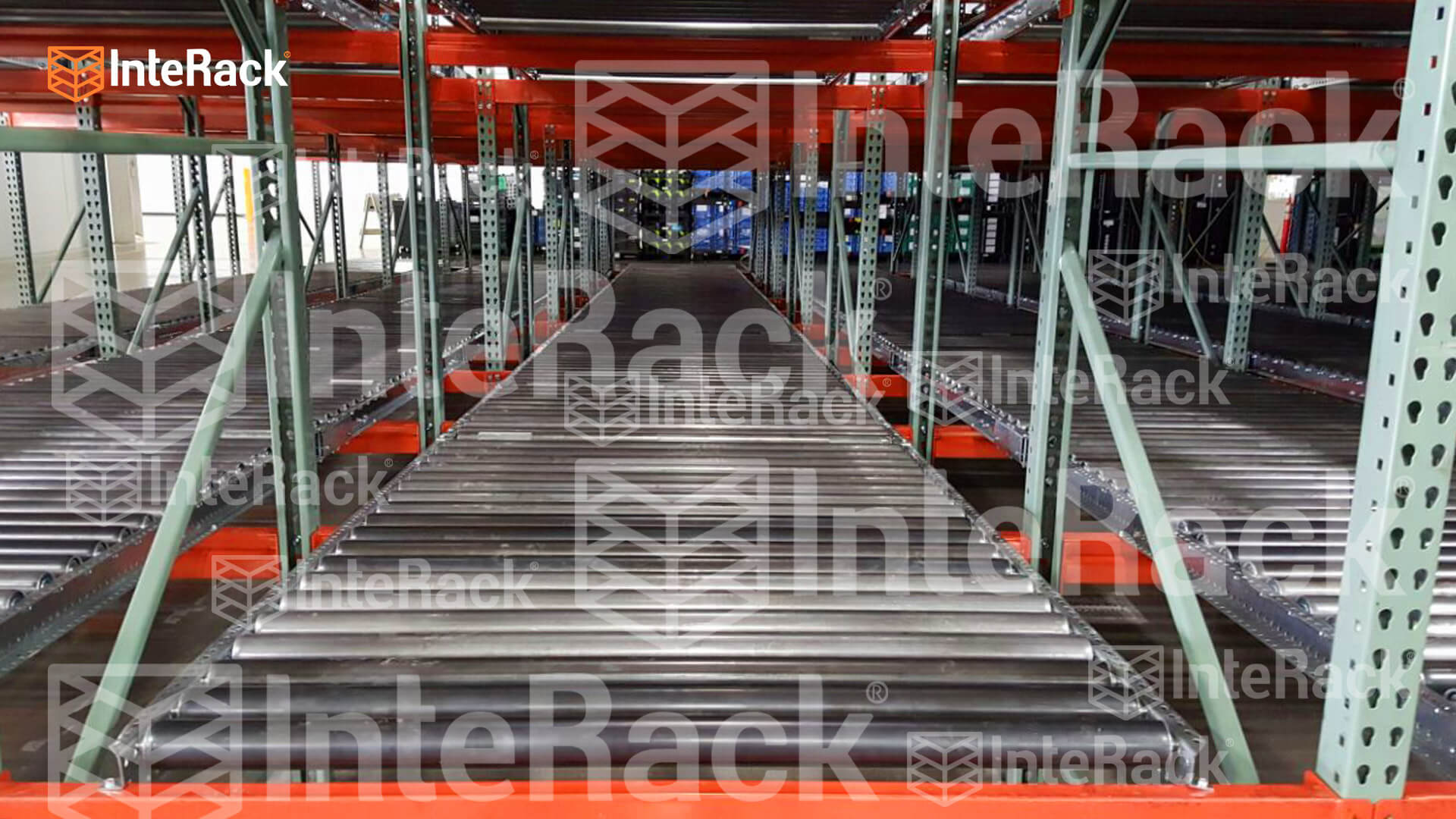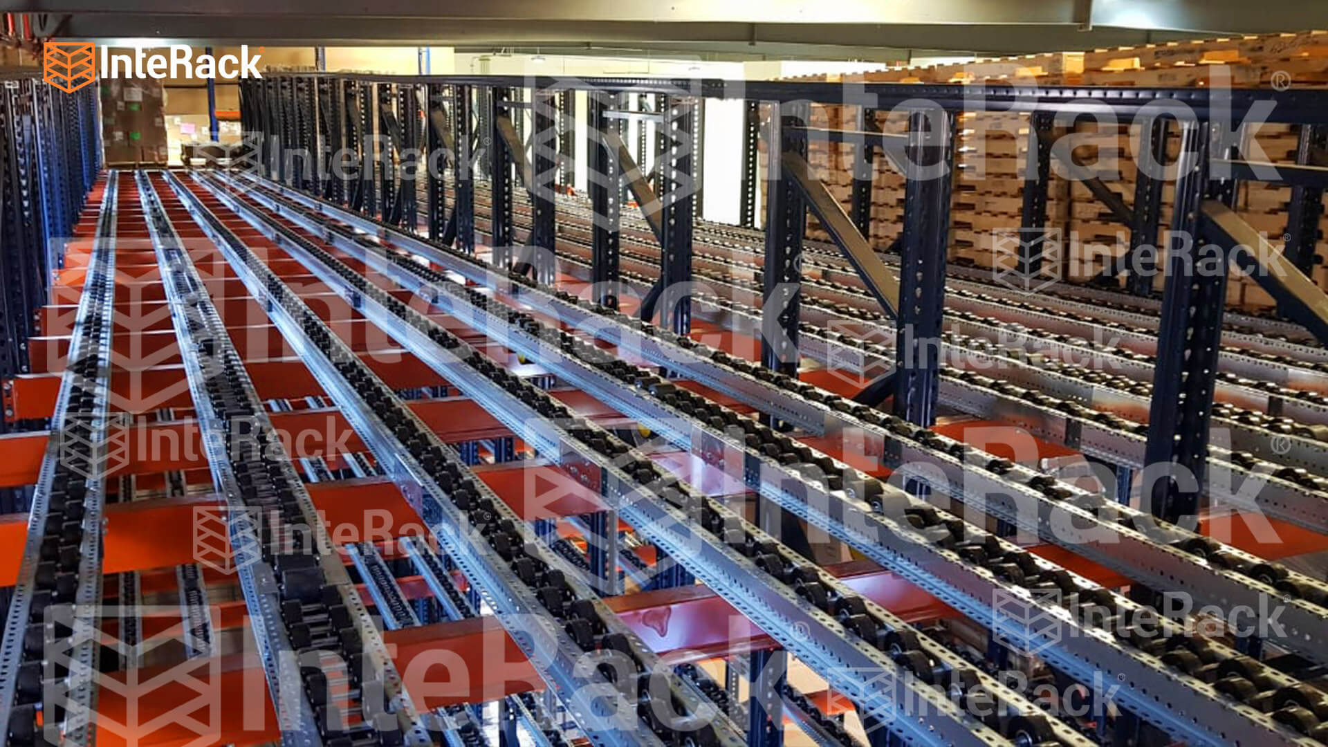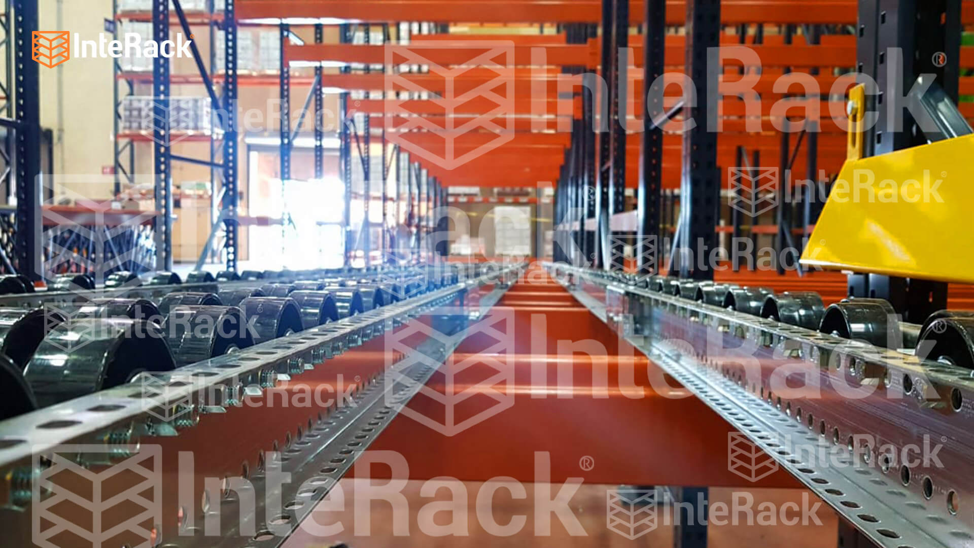 Este sistema de rack dinámico es una solución para la automatización de almacenes, con un flujo de primeras salidas y primeras entradas. Al tratarse de racks con rodillos, las tarimas se cargan por un lado del rack y se deslizan fácilmente al otro, utilizando en su totalidad el espacio de almacenaje disponible.